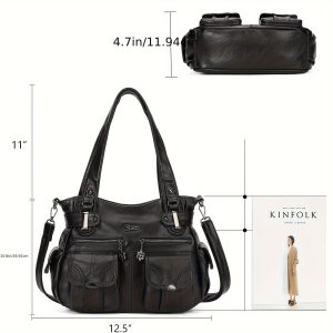 This product has multiple variants. The options may be chosen on the product pageWomen's tote bagsKL928 Women’s Large Hobo Shoulder Bag – Soft Synthetic Leather Multi-Pocket Tote with Adjustable Strap, Zipper Closure & Polyester Lining, Black Casual Purse for Work, Travel, Shopping