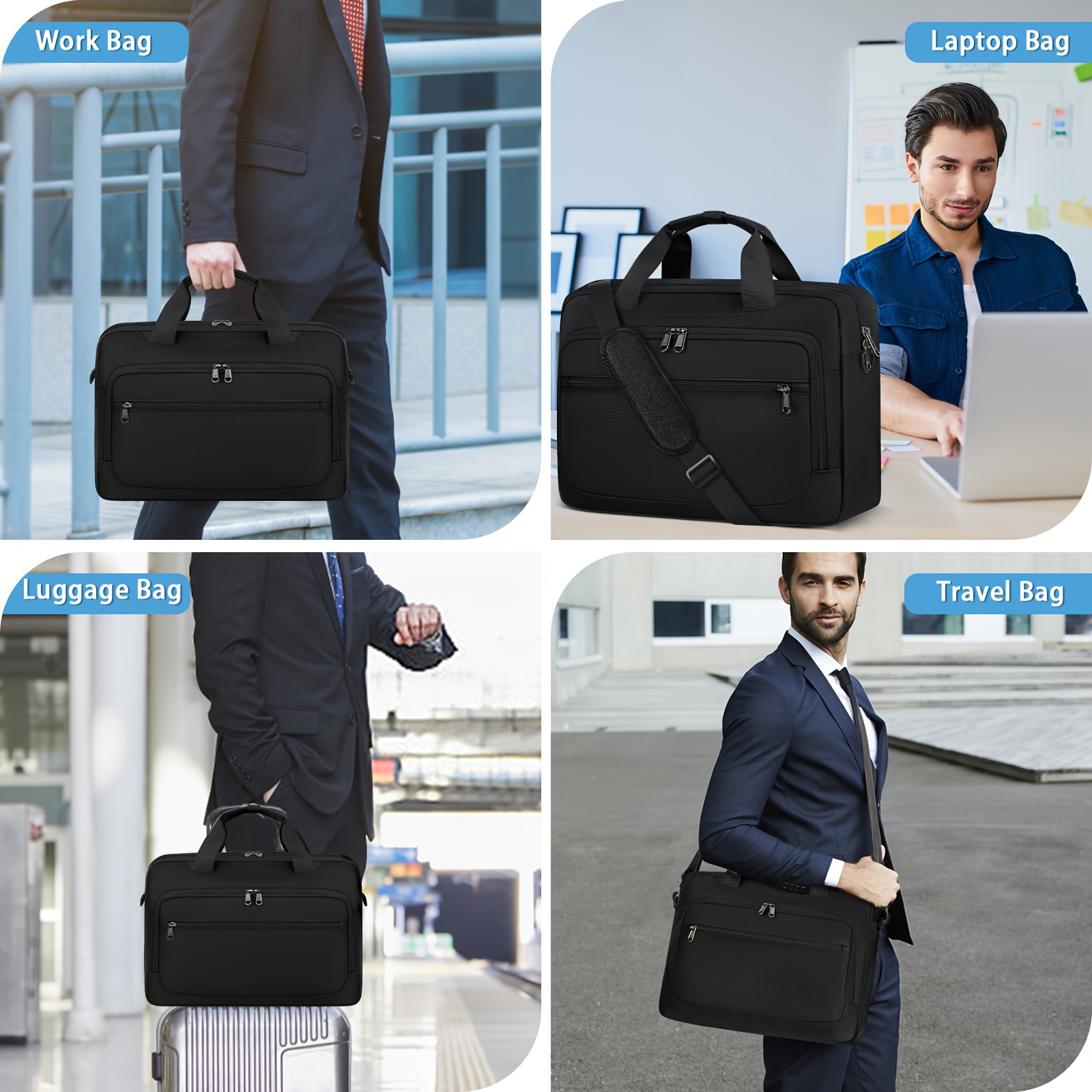- 15.6 Inch High Quality Laptop Briefcase for Men & Women – Durable Polyester Messenger Bag with Adjustable Shoulder Strap, Multiple Compartments & Front Pocket, Sleek Black Design for Business Travel, School, Work, Oiledged Detailing, Laptop Bag