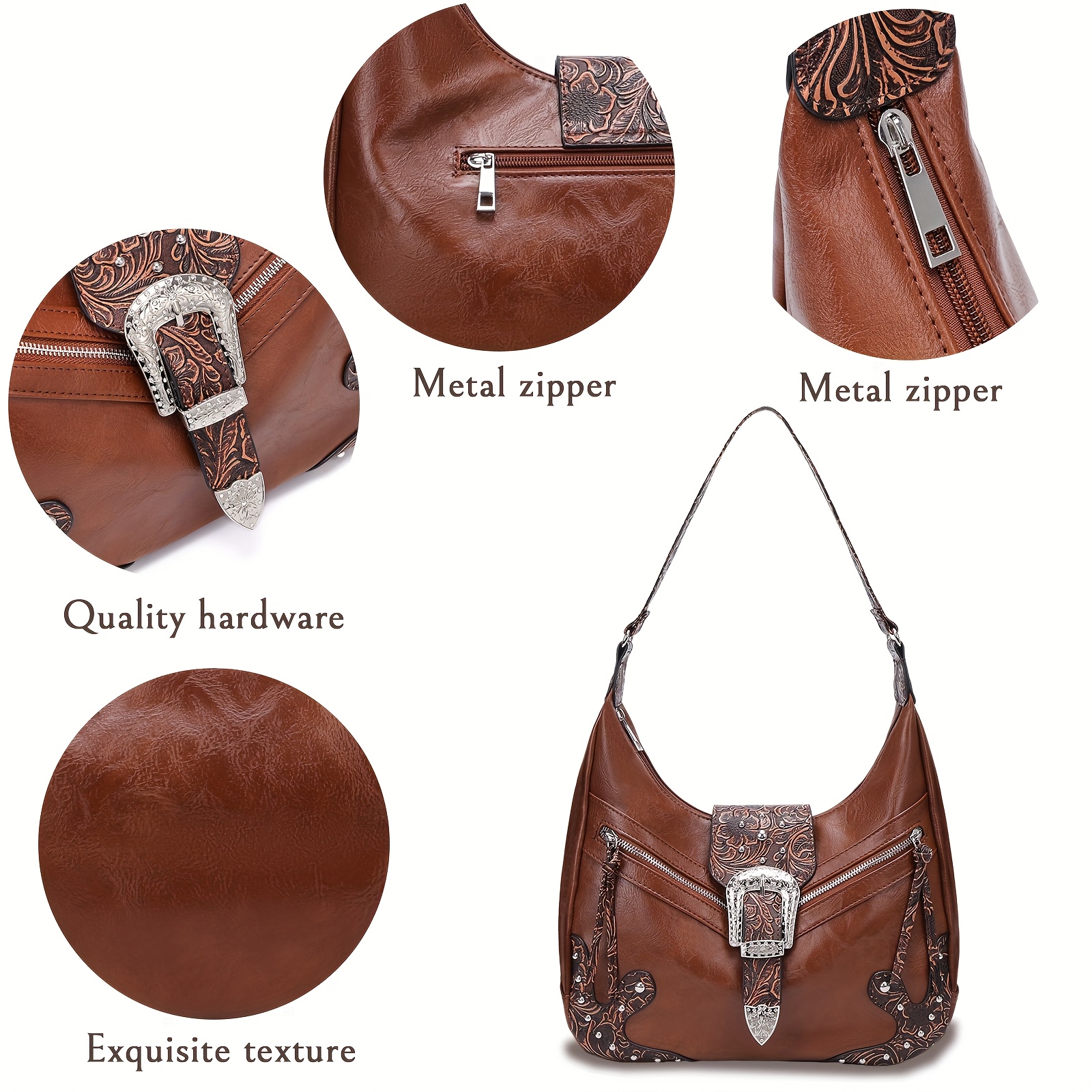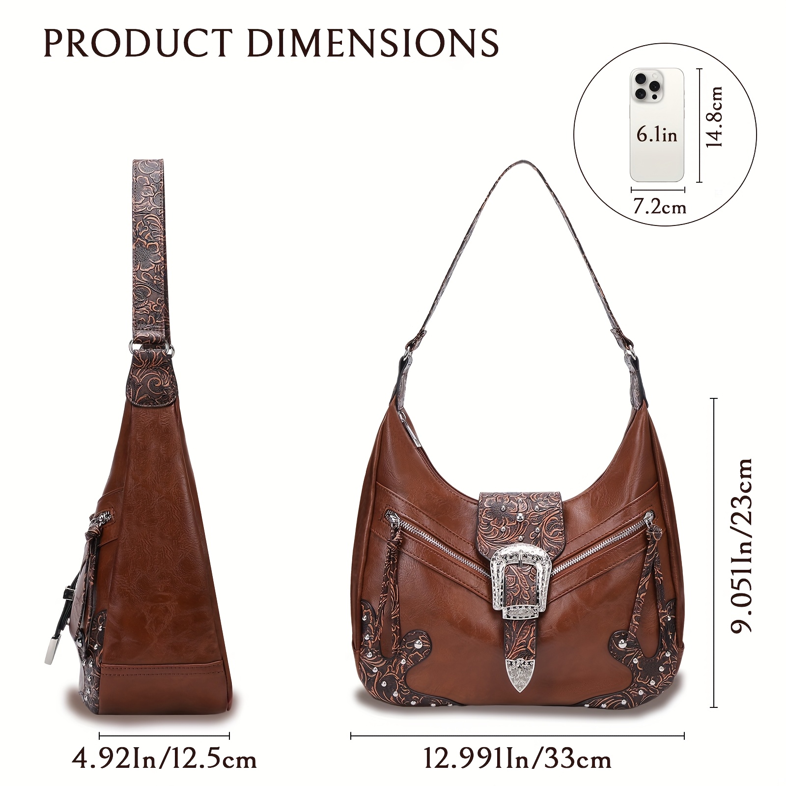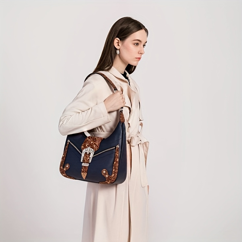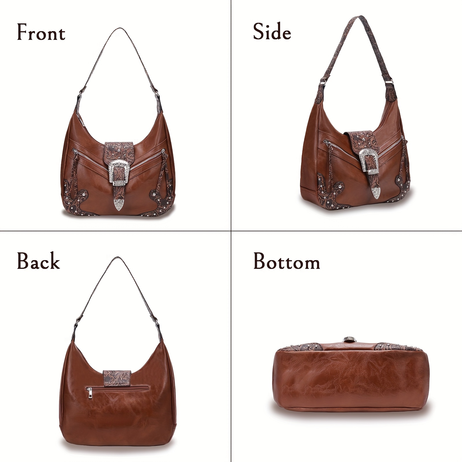 Bohemian Western Saddle Bag – Shoulder Purse with Zipper & Buckle Closure, 3 Outer Pockets, Floral Embossed Design, Large Capacity for Daily Essentials, Commute, Work, Events, and Travel, Event Accessory | Rustic Western Charm | Bag