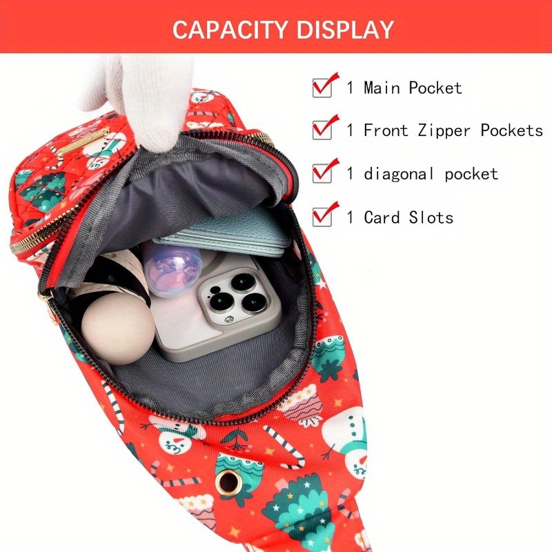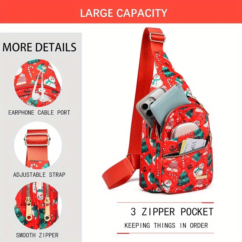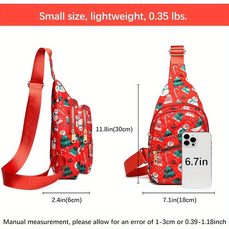 - Christmas Crossbody Sling Backpack Bag – Red with Green, Zipper Closure, Adjustable Strap – Compact Daypack for Womenu002FMen, Travel, Hiking, Running, Everyday Use – Festive Holiday Gift Idea, Durable Synthetic Leather
