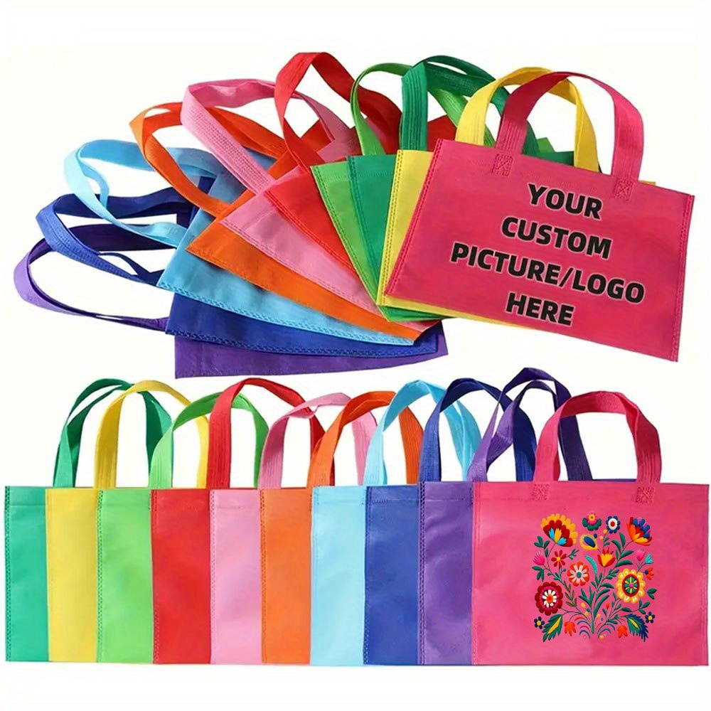 Custom Colorful Pattern Non-Woven Tote Bag with Logo Option – 60pcsu002FSet for Bridal Shower, Halloween, Christmas, Father’s Day, Mother’s Day, Easter, Thanksgiving Gift Bags