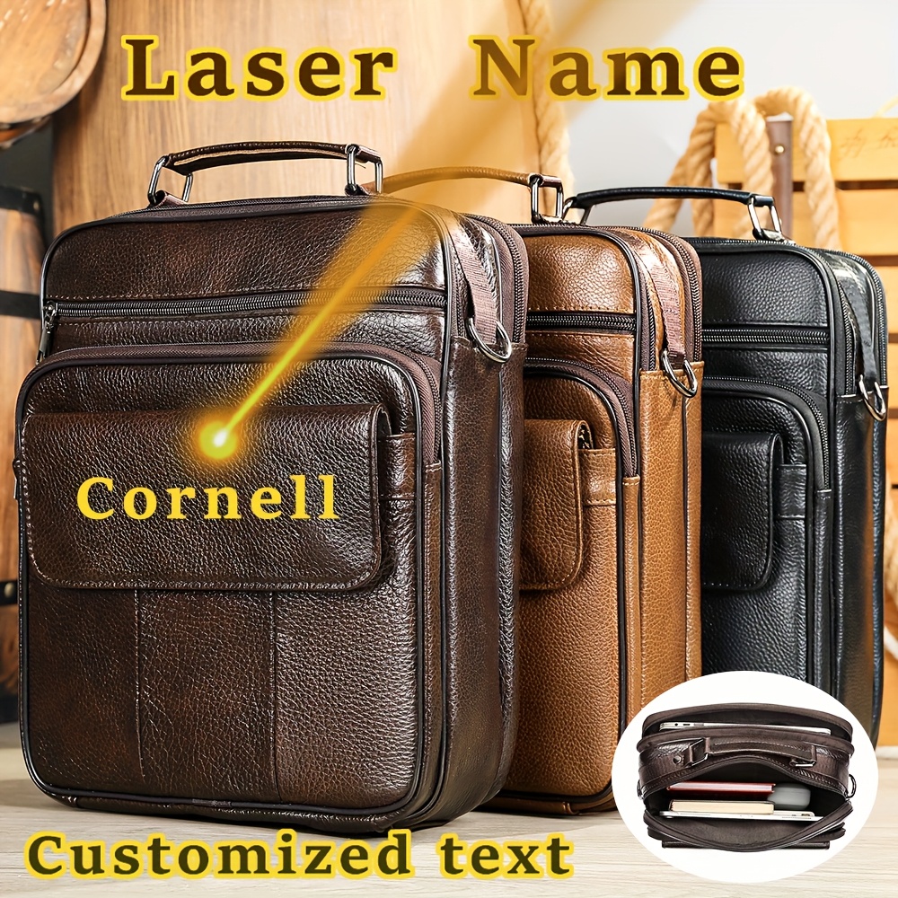 Customized Exclusive Genuine Genuine Leather Messenger Bag, Unique Crossbody Bag with Shoulder Strap for Casual Commuting and Outing, Special Gift for Partner