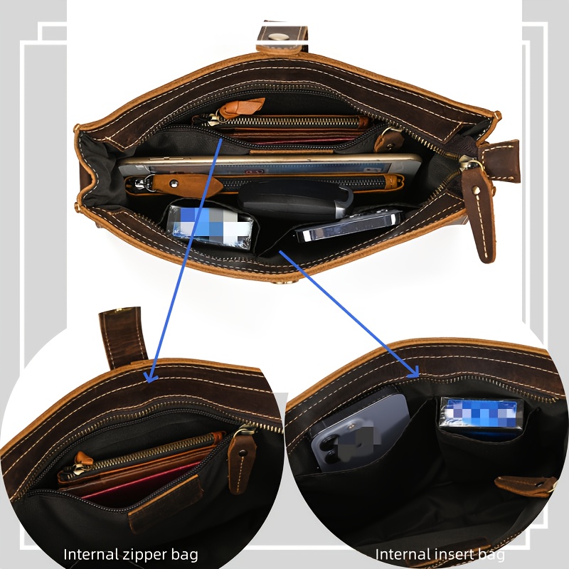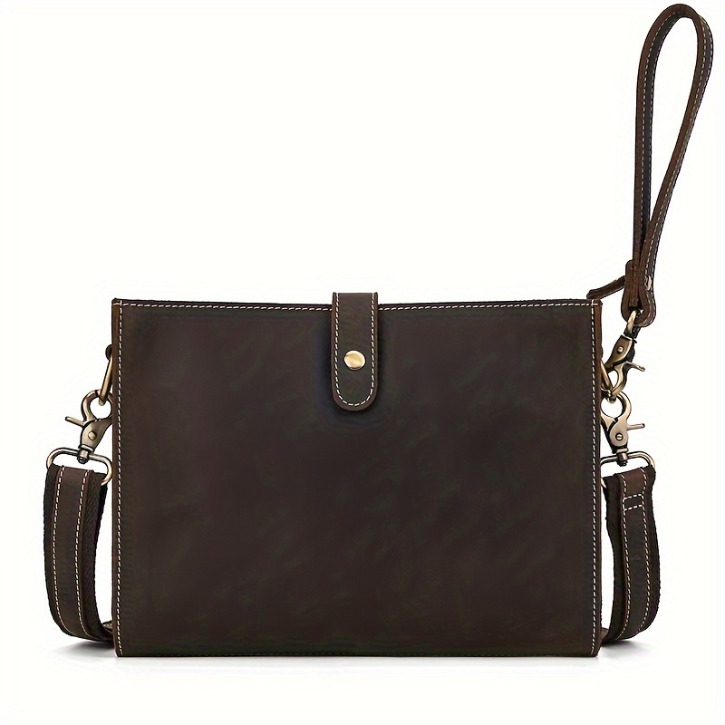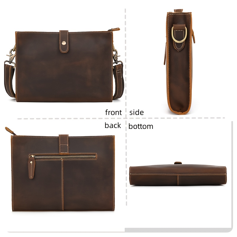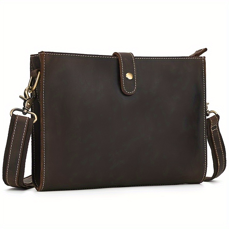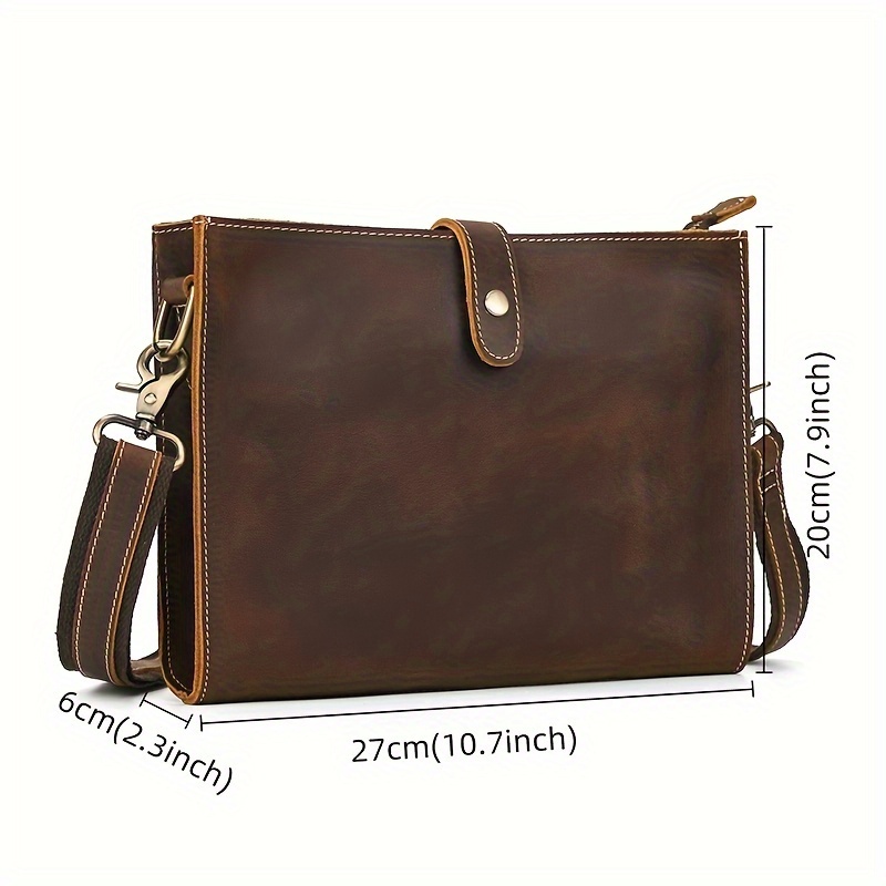 - Men’S Vintage Crazy Horse Leather Handbag with Detachable Shoulder Strap, Multi-Way Carry, Brown, Functional Design|Vintage Style|Genuine Leather Bag