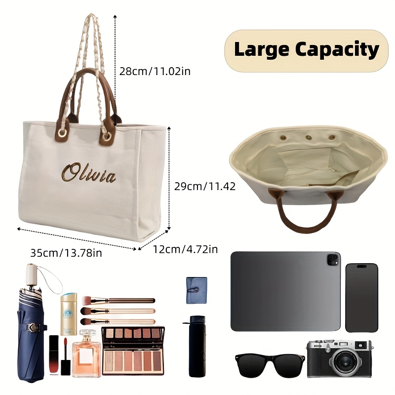 Be the first to review “Personalized Custom Embroidered Name Tote Bag for Women – Durable Beige Shoulder Bag with Removable Chain Straps & Zipper Closure, Casual Work Handbag for Everyday Use, Polyester Lined Interior” Cancel reply