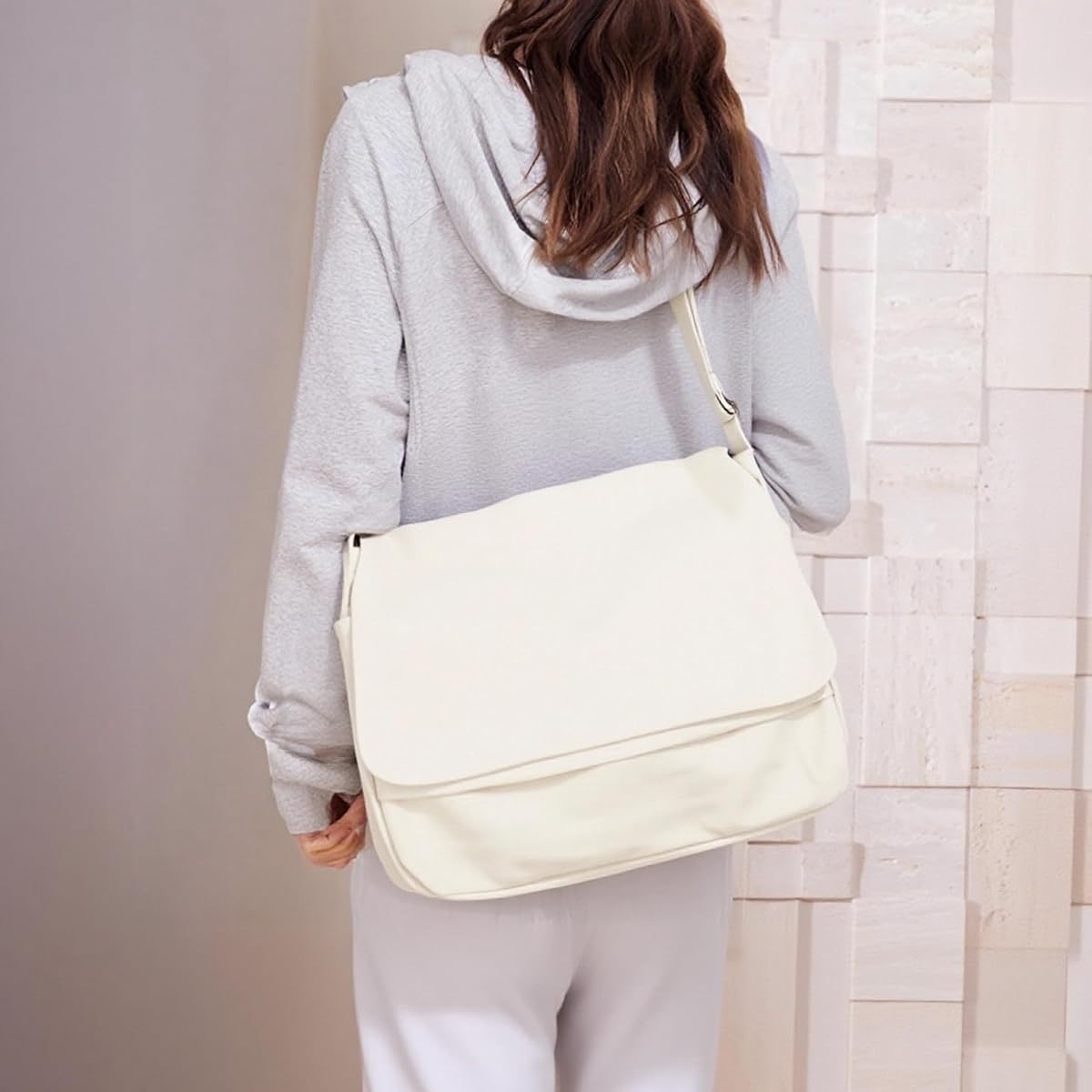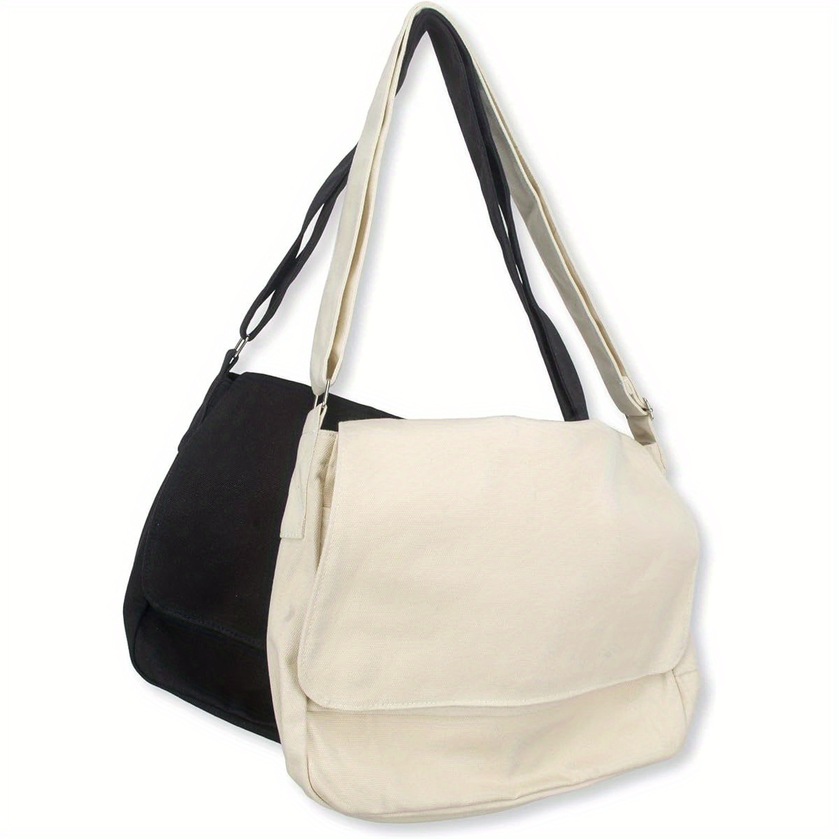 - Sturdy Canvas Messenger Bag – Large Capacity, Durable Shoulder Bag with Adjustable Strap, Beige, Perfect for Everyday Use, Casual Shoulder Bag | Minimalist Design | Canvas Material