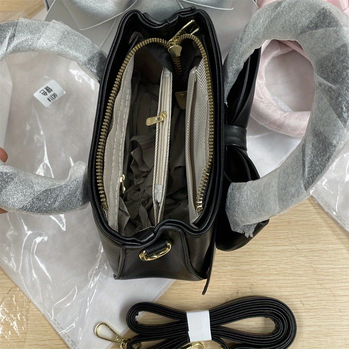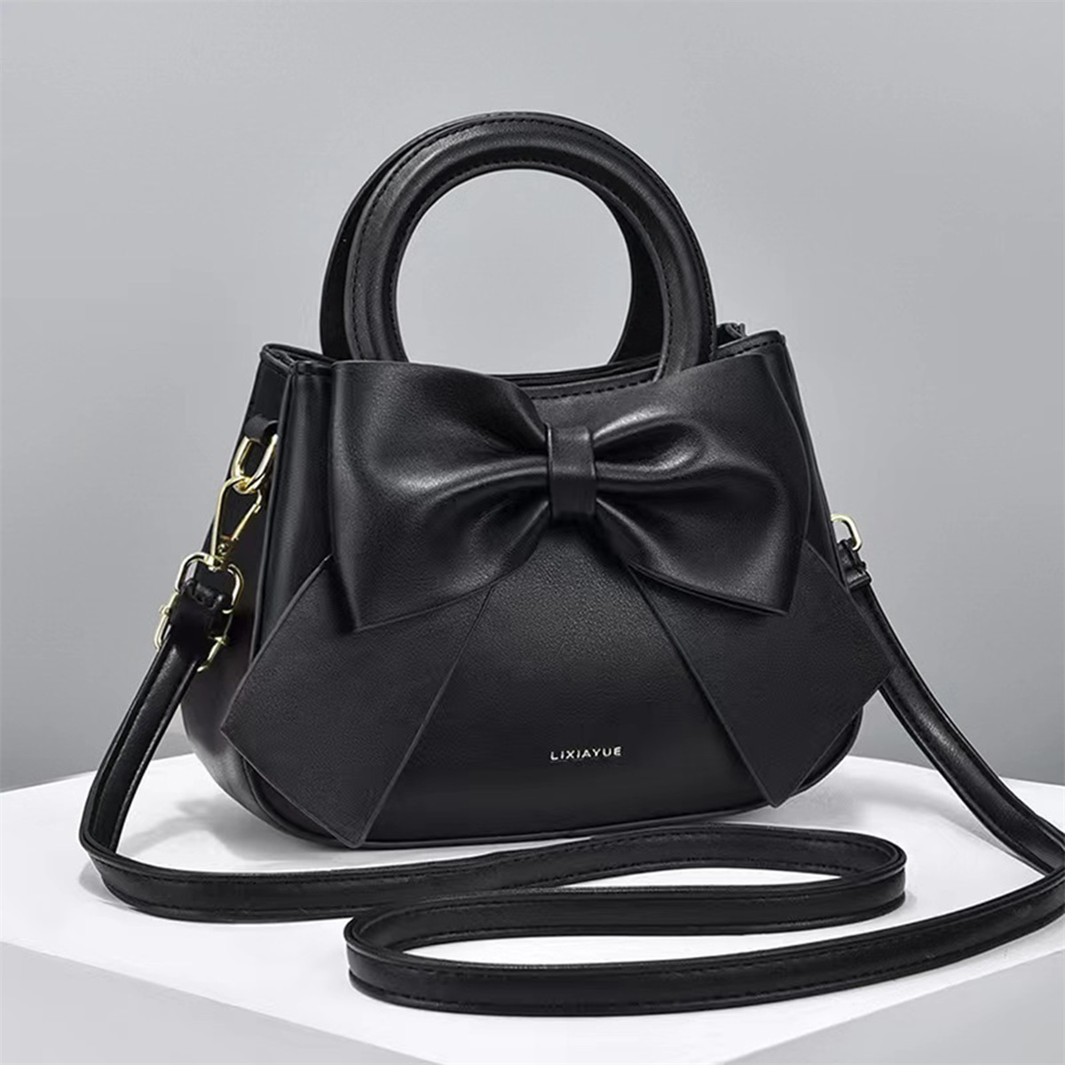 Women’s Elegant Bow-Adorned Synthetic Synthetic Leather Crossbody Bag – Adjustable Strap, Zipper Closure, Polyester Lining – Trendy Small Shoulder Purse for Daily, Office, Outdoor (Black & Beige), Purse Strap Crossbody, Daily Use Accessory, Durable Handbag, Casual Accessory, Stylish Accessory, Quality Craftsmanship, Fashion Lovers