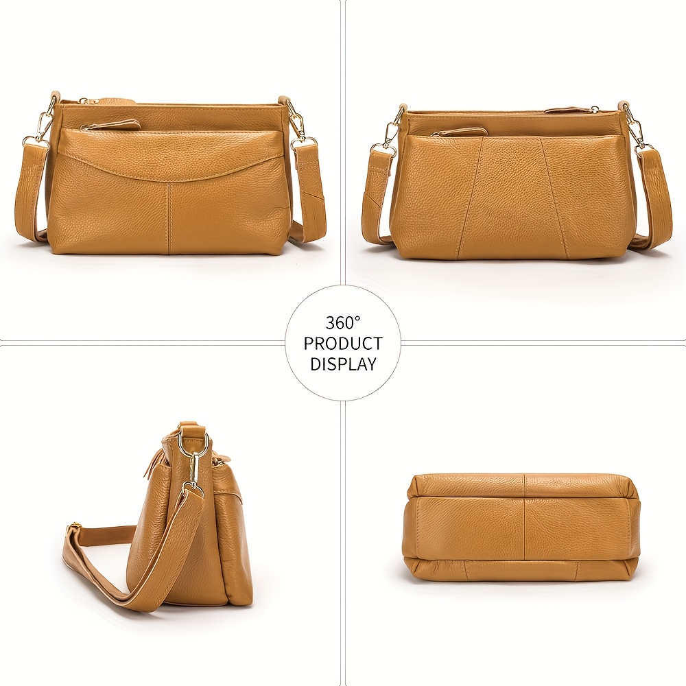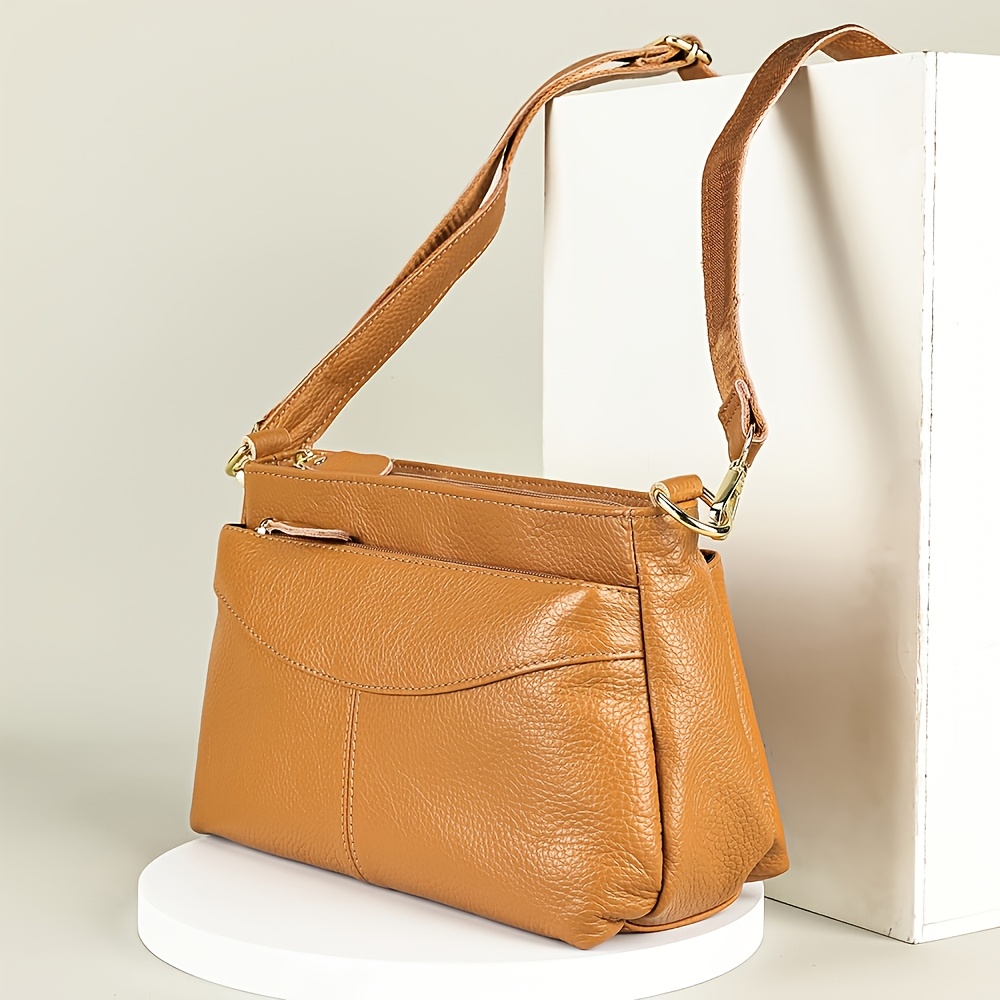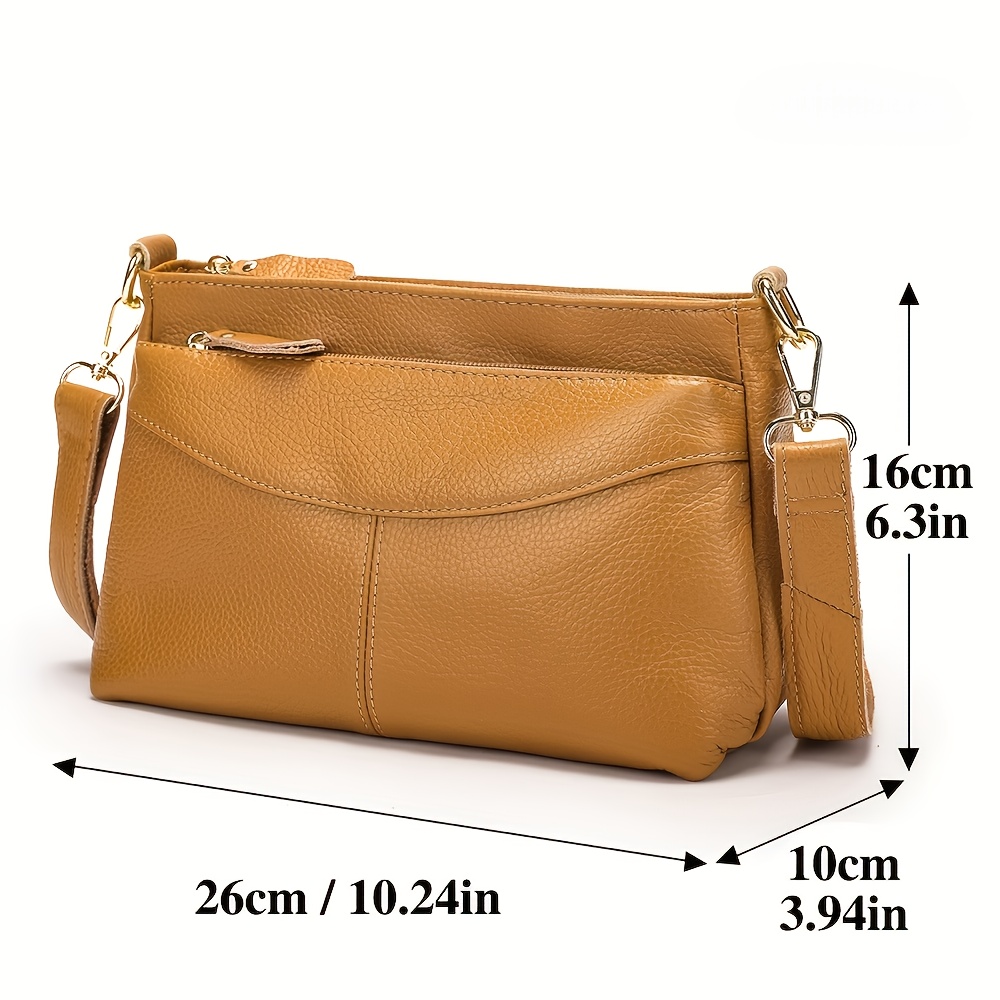 Women’s Genuine Leather Handbag & Crossbody Bag – Adjustable Strap, Golden-Tone Hardware, Zipper Closure, Solid Color (Greenu002FYellowu002FBlacku002FTanu002FNavyu002FGrayu002F Brownu002FWhiteu002FBeige) – Vintage Style Luxury Purse with Golden-Tipped Buckle, Smooth Texture, Hand Washable, Ideal Birthdayu002FAnniversary Gift for Women, Everyday & Formal Use, Hand Bag for Women, Evening Bags for Women Elegant Classy, Designer Handbags, Branded Bags for Women High Quality, Clutch Bags for Women Elegant,