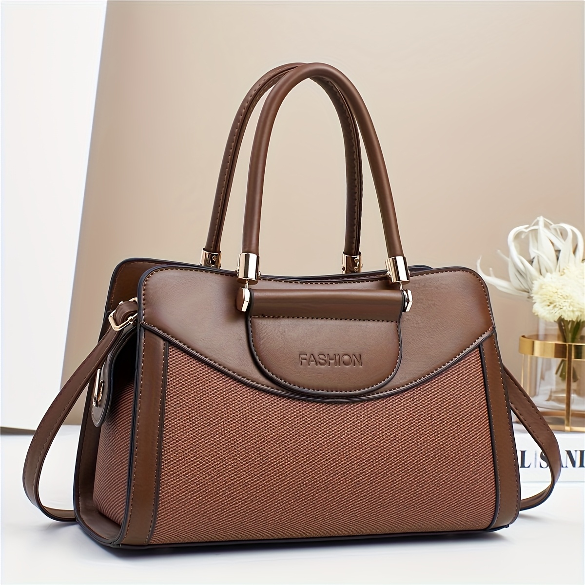 Women’s Large Capacity Crossbody Bag – Brown -like Handbag with Zipper Closure, Structured Retro Purse for Everyday & Formal Events, Durable Women’s Shoulder Purse, Crossbody Purse, Evening Accessory, Sophisticated Look, Oiled Edge Detailing, Travel Accessory, Patchwork Design, Polyester Lining, Professional Women