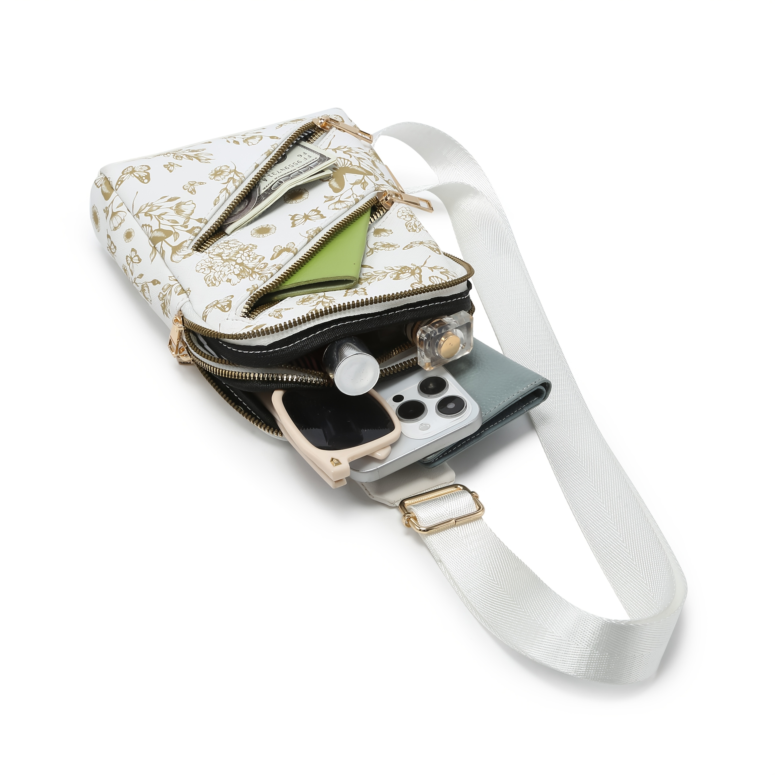 - ZENG Women’S Crossbody Bag, Small Sling Bag Multilayer Zipper Fanny Pack Crossbody Bags, Chest Bag with Wide Strap